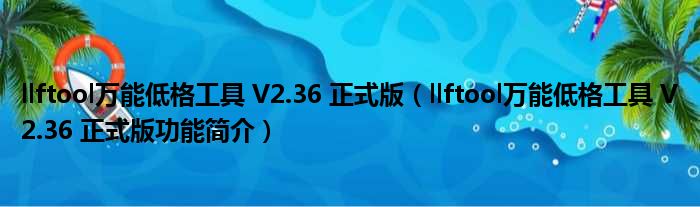 llftool万能低格工具 V2.36 正式版(llftool万能低格工具 V2.36 正式版功能简介)