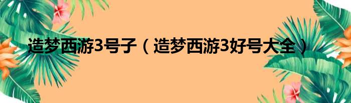 造梦西游3号子(造梦西游3好号大全)