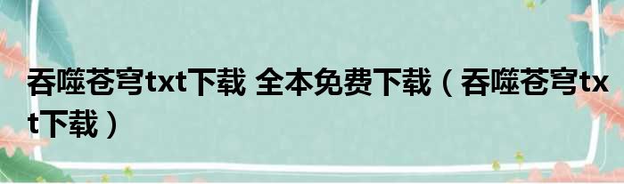 导读 大家好,今天小六子来为大家解答以下的问题,关于吞噬苍穹txt下载 全本免费下载,吞噬苍穹txt下载这个很多人还不知道,现在让我们一起来看