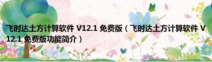 飞时达土方计算软件 V12.1 免费版(飞时达土方计算软件 V12.1 免费版功能简介)