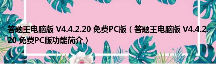 答题王电脑版 V4.4.2.20 免费PC版(答题王电脑版 V4.4.2.20 免费PC版功能简介)
