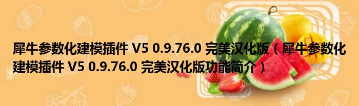 犀牛参数化建模插件 V5 0.9.76.0 完美汉化版(犀牛参数化建模插件 V5 0.9.76.0 完美汉化版功能简介)