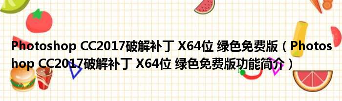 Photoshop CC2017破解补丁 X64位 绿色免费版(Photoshop CC2017破解补丁 X64位 绿色免费版功能简介)
