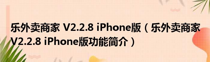 导读 大家好,关于乐外卖商家 V2 2 8 iPhone版,乐外卖商家 V2 2 8 iPhone版功能简介这个很多人还不知道,小勒来为大家解答以上的问题,现在让