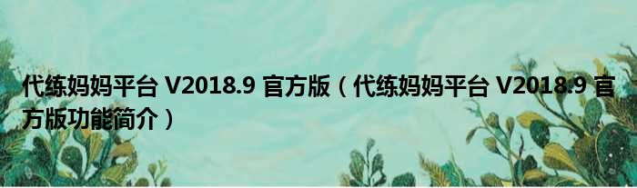 代练妈妈平台 V2018.9 官方版(代练妈妈平台 V2018.9 官方版功能简介)