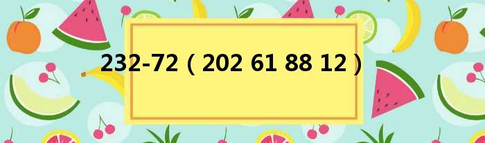 大家好,今天小六子来为大家解答以下的问题,关于232-72,202 61 88 12这个很多人还不知道,现在让我们一起来看看吧!