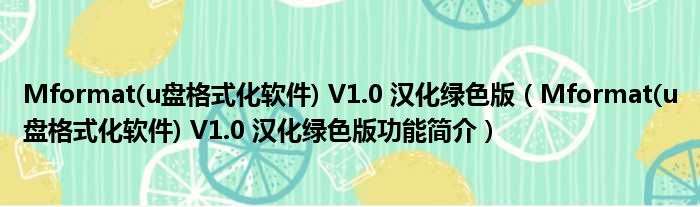 Mformat(u盘格式化软件) V1.0 汉化绿色版(Mformat(u盘格式化软件) V1.0 汉化绿色版功能简介)