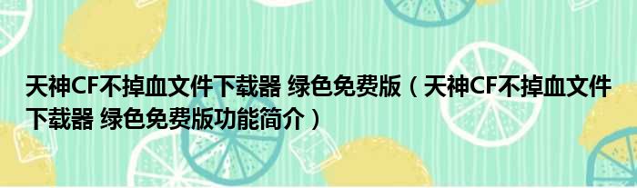 导读 大家好,关于天神CF不掉血文件下载器 绿色免费版,天神CF不掉血文件下载器 绿色免费版功能简介这个很多人还不知道,小勒来为大家解答以上的