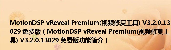 导读 大家好,关于MotionDSP vReveal Premium(视频修复工具) V3 2 0 13029 免费版,MotionDSP vReveal Premium(视频修复工具) V3 2 0 1302