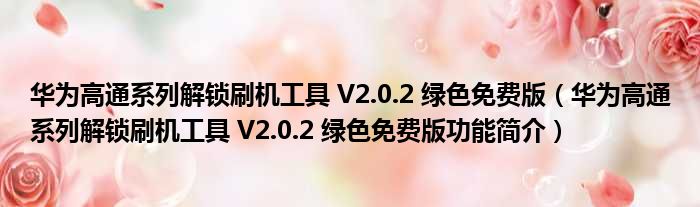 华为高通系列解锁刷机工具 V2.0.2 绿色免费版(华为高通系列解锁刷机工具 V2.0.2 绿色免费版功能简介)