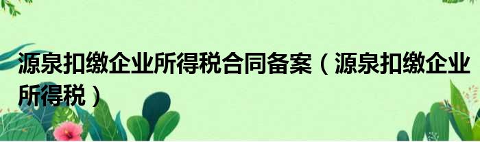 源泉扣缴企业所得税合同备案(源泉扣缴企业所得税)