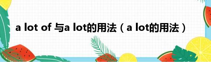 导读 大家好,今天小六子来为大家解答以下的问题,关于a lot of 与a lot的用法,a lot的用法这个很多人还不知道,现在让我们一起来看看吧!1