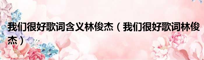我们很好歌词含义林俊杰(我们很好歌词林俊杰)