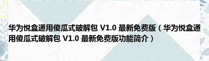 华为悦盒通用傻瓜式破解包 V1.0 最新免费版(华为悦盒通用傻瓜式破解包 V1.0 最新免费版功能简介)
