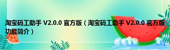 导读 大家好,关于淘宝码工助手 V2 0 0 官方版,淘宝码工助手 V2 0 0 官方版功能简介这个很多人还不知道,小勒来为大家解答以上的问题,现在让