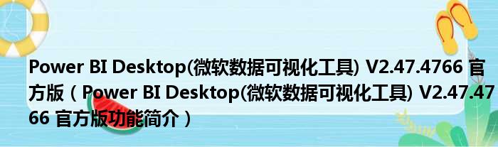 Power BI Desktop(微软数据可视化工具) V2.47.4766 官方版(Power BI Desktop(微软数据可视化工具) V2.47.4766 官方版功能简介)
