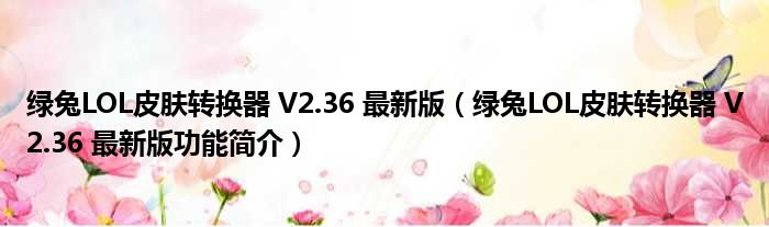 绿兔LOL皮肤转换器 V2.36 最新版(绿兔LOL皮肤转换器 V2.36 最新版功能简介)