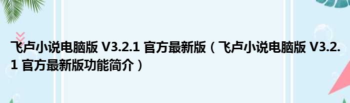 导读 大家好,关于飞卢小说电脑版 V3 2 1 官方最新版,飞卢小说电脑版 V3 2 1 官方最新版功能简介这个很多人还不知道,小勒来为大家解答以上的