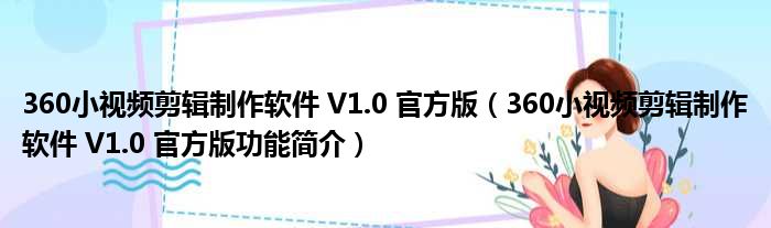 360小视频剪辑制作软件 V1.0 官方版(360小视频剪辑制作软件 V1.0 官方版功能简介)