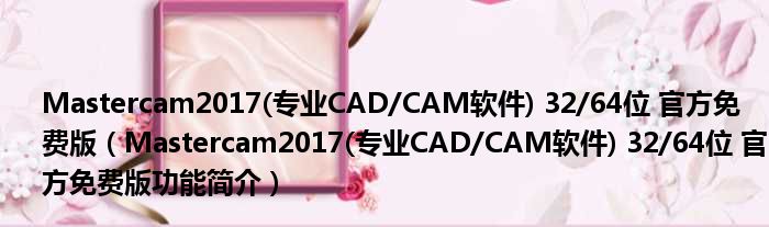 Mastercam2017(专业CAD/CAM软件) 32/64位 官方免费版(Mastercam2017(专业CAD/CAM软件) 32/64位 官方免费版功能简介)