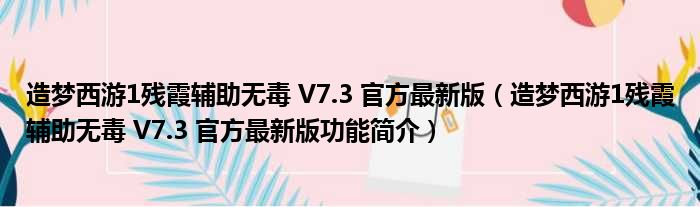 造梦西游1残霞辅助无毒 V7.3 官方最新版(造梦西游1残霞辅助无毒 V7.3 官方最新版功能简介)