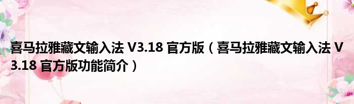 喜马拉雅藏文输入法 V3.18 官方版(喜马拉雅藏文输入法 V3.18 官方版功能简介)