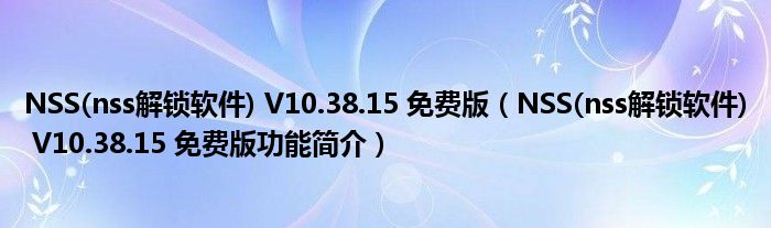 导读 大家好,关于NSS(nss解锁软件) V10 38 15 免费版,NSS(nss解锁软件) V10 38 15 免费版功能简介这个很多人还不知道,小勒来为大家解答以上