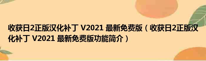 导读 大家好,关于收获日2正版汉化补丁 V2021 最新免费版,收获日2正版汉化补丁 V2021 最新免费版功能简介这个很多人还不知道,小勒来为大家解