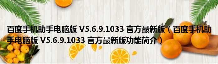 百度手机助手电脑版 V5.6.9.1033 官方最新版(百度手机助手电脑版 V5.6.9.1033 官方最新版功能简介)