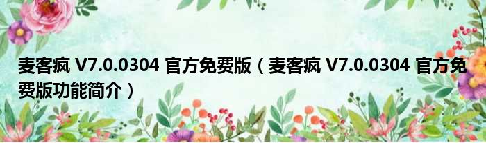 麦客疯 V7.0.0304 官方免费版(麦客疯 V7.0.0304 官方免费版功能简介)