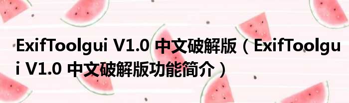 ExifToolgui V1.0 中文破解版(ExifToolgui V1.0 中文破解版功能简介)