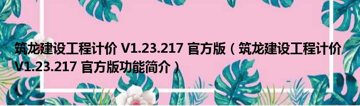 导读 大家好,关于筑龙建设工程计价 V1 23 217 官方版,筑龙建设工程计价 V1 23 217 官方版功能简介这个很多人还不知道,小勒来为大家解答以上