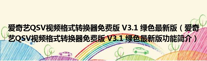 爱奇艺QSV视频格式转换器免费版 V3.1 绿色最新版(爱奇艺QSV视频格式转换器免费版 V3.1 绿色最新版功能简介)