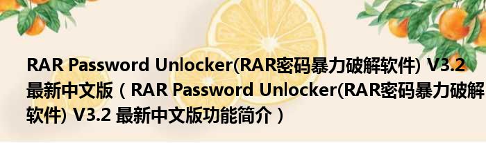 RAR Password Unlocker(RAR密码暴力破解软件) V3.2 最新中文版(RAR Password Unlocker(RAR密码暴力破解软件) V3.2 最新中文版功能简介)