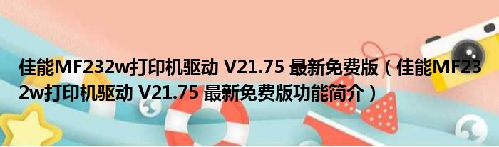 佳能MF232w打印机驱动 V21.75 最新免费版(佳能MF232w打印机驱动 V21.75 最新免费版功能简介)
