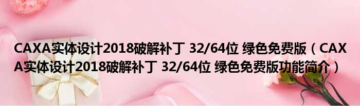 导读 大家好,关于CAXA实体设计2018破解补丁 32 64位 绿色免费版,CAXA实体设计2018破解补丁 32 64位 绿色免费版功能简介这个很多人还不知道,