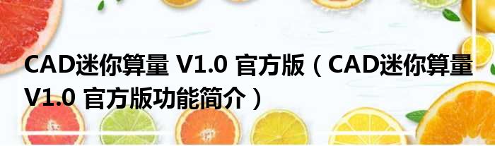 CAD迷你算量 V1.0 官方版(CAD迷你算量 V1.0 官方版功能简介)