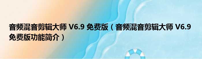 音频混音剪辑大师 V6.9 免费版(音频混音剪辑大师 V6.9 免费版功能简介)
