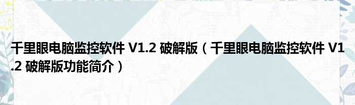 千里眼电脑监控软件 V1.2 破解版(千里眼电脑监控软件 V1.2 破解版功能简介)