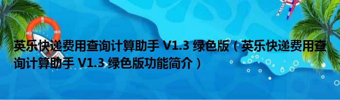 导读 大家好,关于英乐快递费用查询计算助手 V1 3 绿色版,英乐快递费用查询计算助手 V1 3 绿色版功能简介这个很多人还不知道,小勒来为大家解