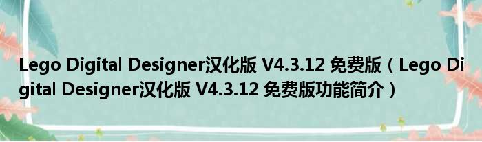 Lego Digital Designer汉化版 V4.3.12 免费版(Lego Digital Designer汉化版 V4.3.12 免费版功能简介)
