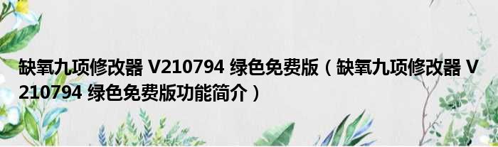 导读 大家好,关于缺氧九项修改器 V210794 绿色免费版,缺氧九项修改器 V210794 绿色免费版功能简介这个很多人还不知道,小勒来为大家解答以上