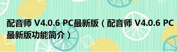 导读 大家好,关于配音师 V4 0 6 PC最新版,配音师 V4 0 6 PC最新版功能简介这个很多人还不知道,小勒来为大家解答以上的问题,现在让我们一起