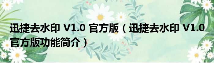 迅捷去水印 V1.0 官方版(迅捷去水印 V1.0 官方版功能简介)