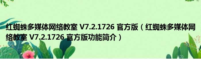 红蜘蛛多媒体网络教室 V7.2.1726 官方版(红蜘蛛多媒体网络教室 V7.2.1726 官方版功能简介)