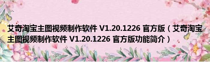 导读 大家好,关于艾奇淘宝主图视频制作软件 V1 20 1226 官方版,艾奇淘宝主图视频制作软件 V1 20 1226 官方版功能简介这个很多人还不知道,小
