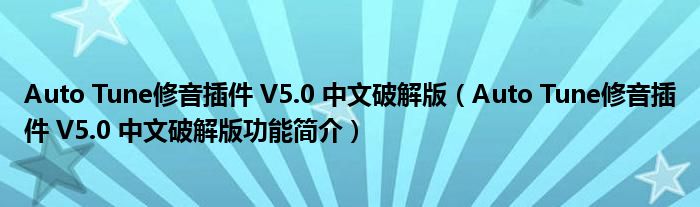 Auto Tune修音插件 V5.0 中文破解版(Auto Tune修音插件 V5.0 中文破解版功能简介)