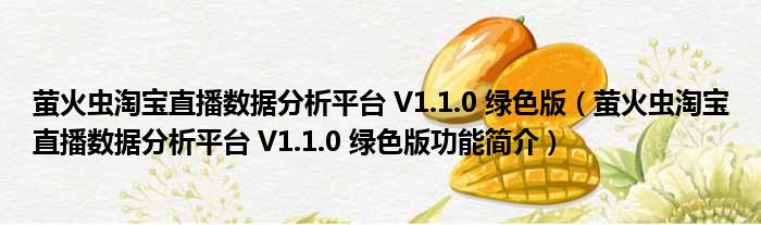 萤火虫淘宝直播数据分析平台 V1.1.0 绿色版(萤火虫淘宝直播数据分析平台 V1.1.0 绿色版功能简介)