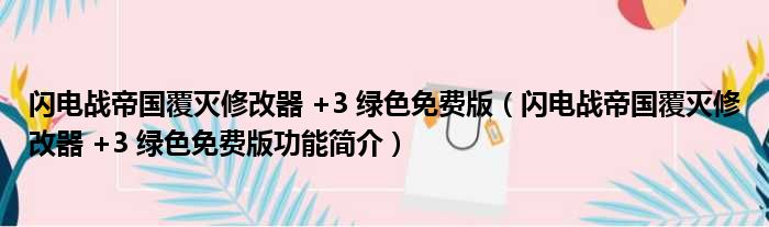 闪电战帝国覆灭修改器 +3 绿色免费版(闪电战帝国覆灭修改器 +3 绿色免费版功能简介)