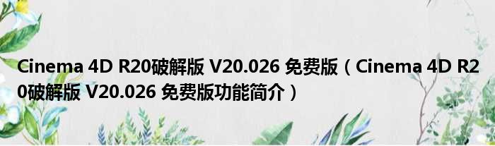 Cinema 4D R20破解版 V20.026 免费版(Cinema 4D R20破解版 V20.026 免费版功能简介)